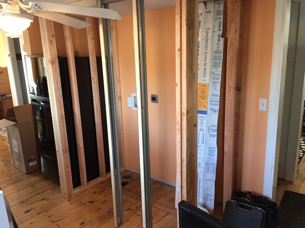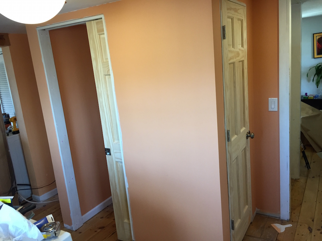 One of the first projects I did when I purchased the house was to stack the washer and dryer and build a laundry closet that would allow me to tuck the washer and dryer away. This also gave me the opportunity to build a coat closet next to the front door (the existing closet was on the other side of the kitchen).