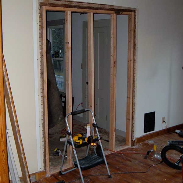 The first thing that we did with the living room was remove the doorway to the front room. The doorway isn’t required and the living room becomes a lot more usable with one of the walls being flat without windows or doors.