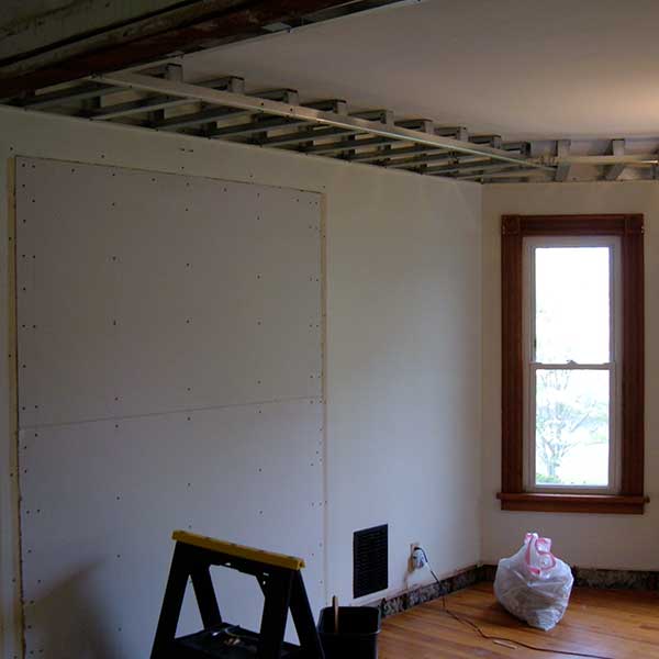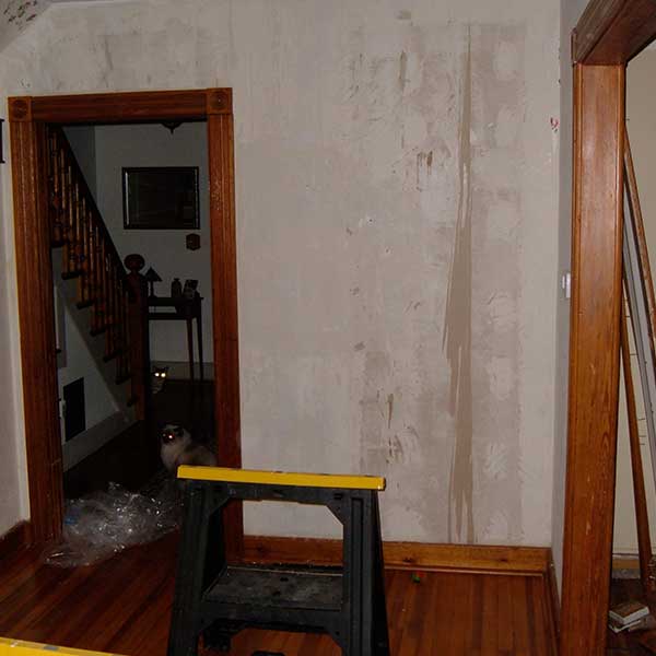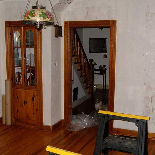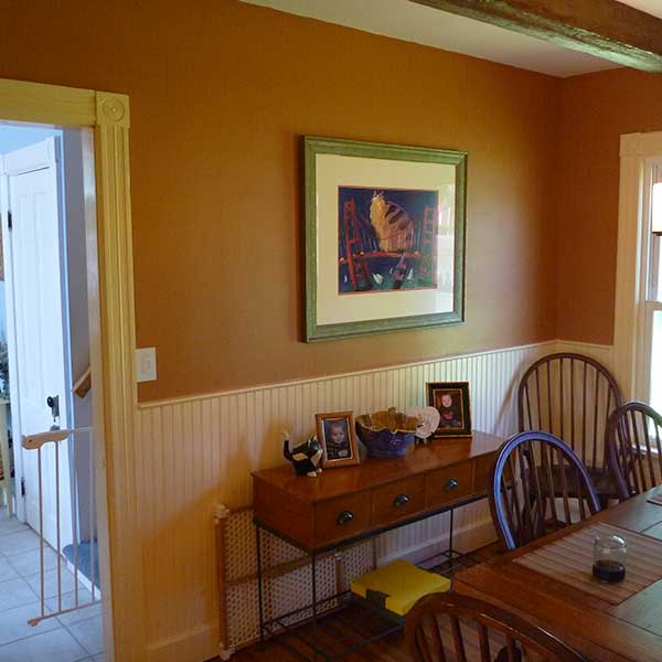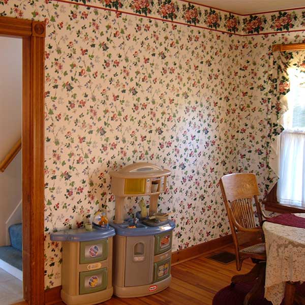 The dining room is central to the rest of the house, and the wallpaper was probably the primary reasons for renovating the room. We spent a number of hours stripping off that wallpaper, and even afterwords I needed to skimcoat and sand the walls to get them ready for paint.