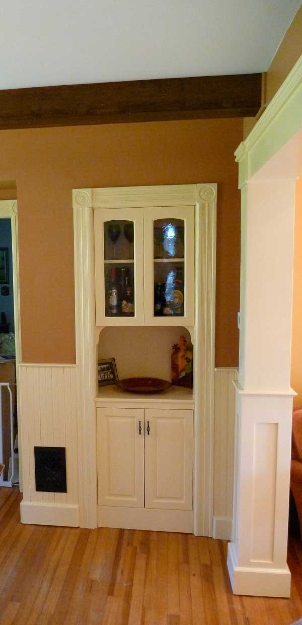We also added bead-board and a chair rail around the perimeter of the room. The last element we added was ornamental columns between the dining room and living room.