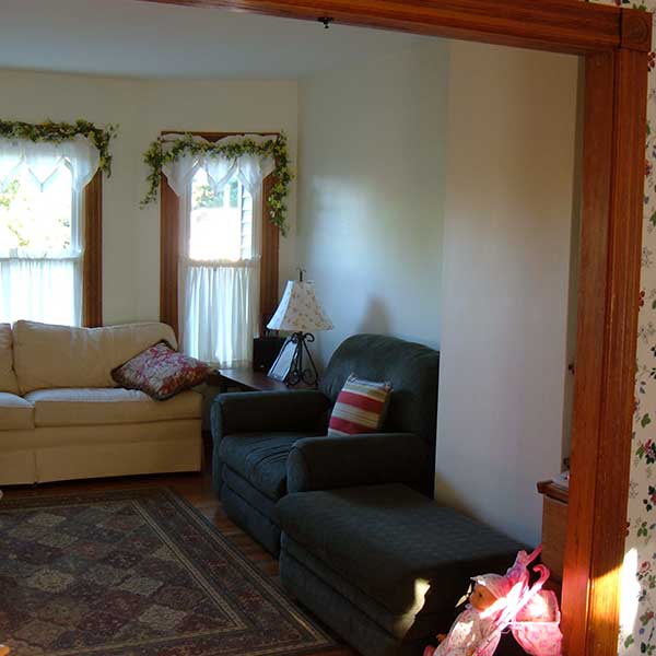 The first thing that we did with the living room was remove the doorway to the front room. The doorway isn’t required and the living room becomes a lot more usable with one of the walls being flat without windows or doors.