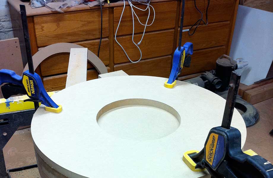 MDF is messy (and dangerous). I’ve used it several times in the past, and it’s a convenient medium to work with. I bought a workshop air filter before this project (knowing that I’d be cutting a lot of MDF), but everything in the workshop had a coating of MDF when I was done. I did many rough cuts outside, but I should have done all of the cutting outside.